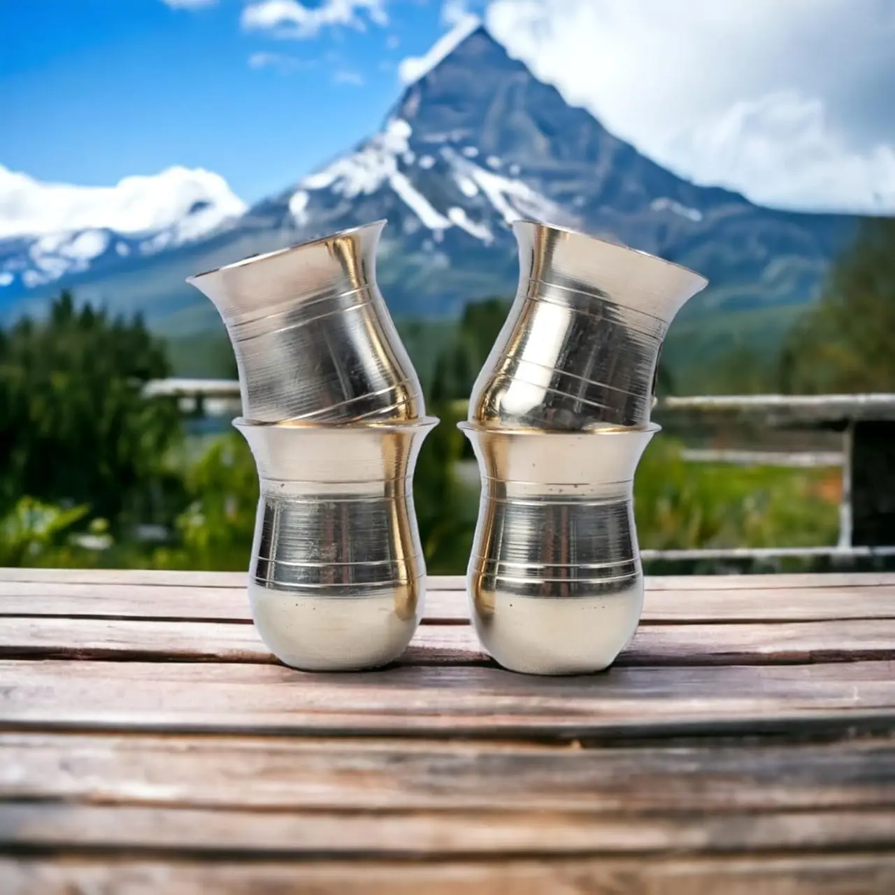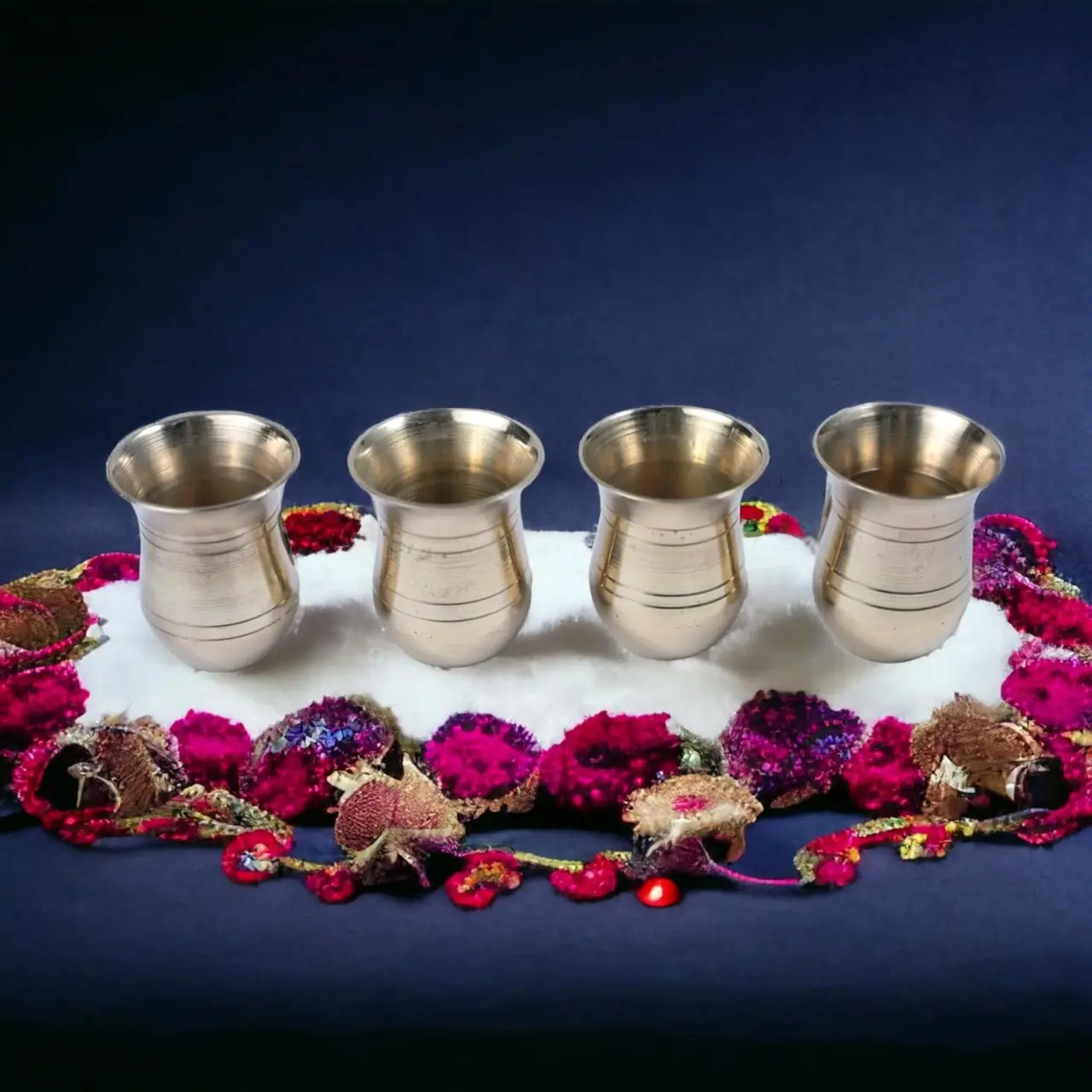 Brass Puja Glass Set – Pack of 4 | Pure Brass Tumblers for Panchamrit, Ganga Jal & Ritual Use