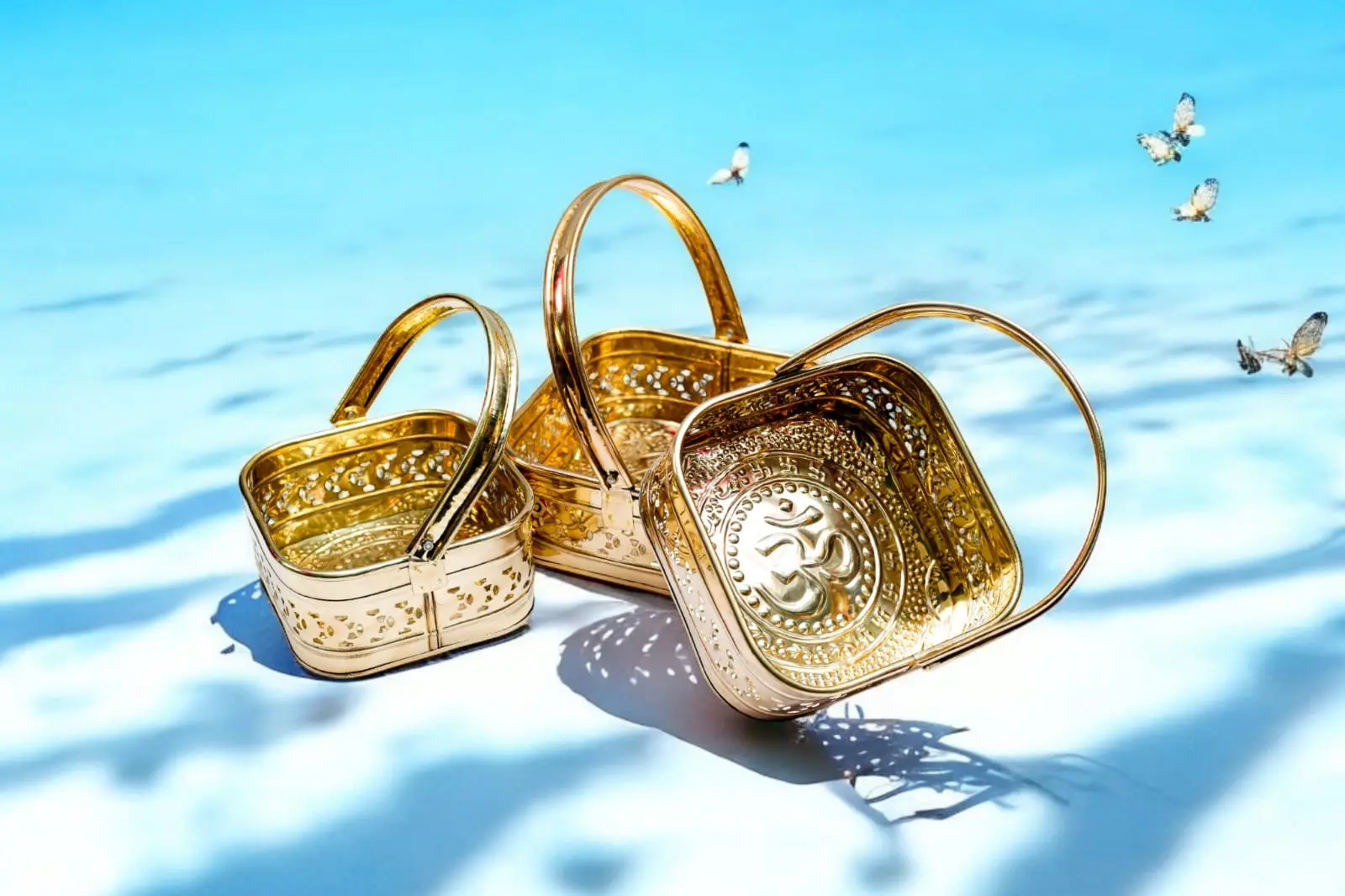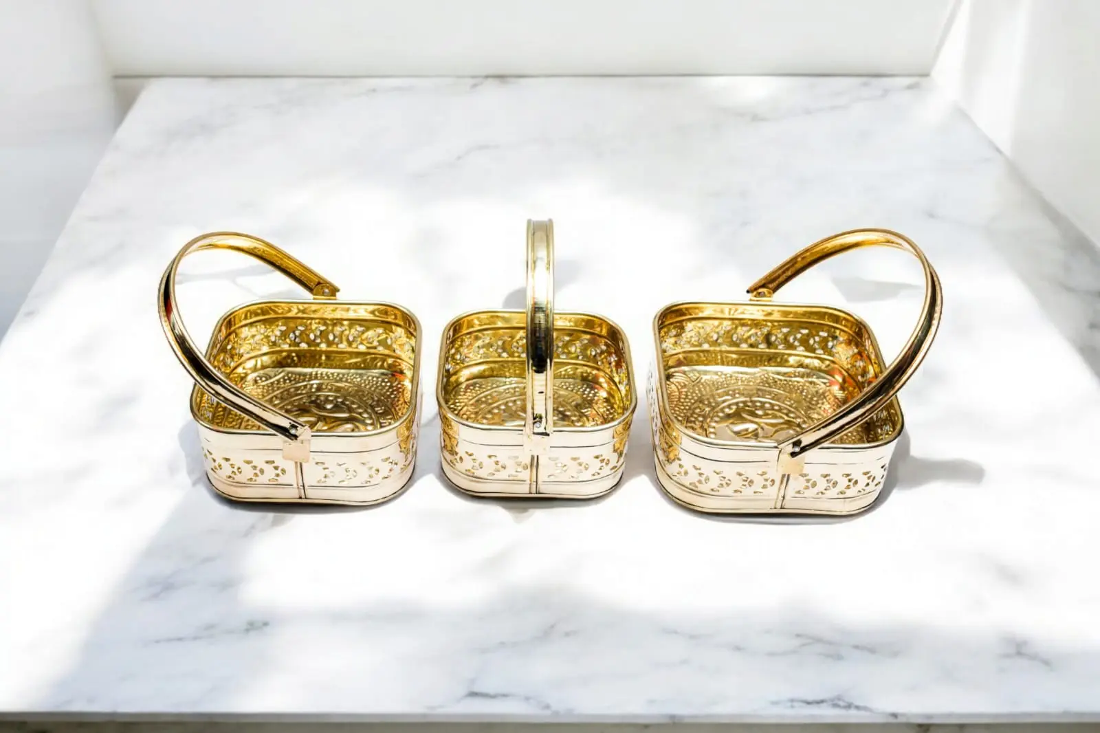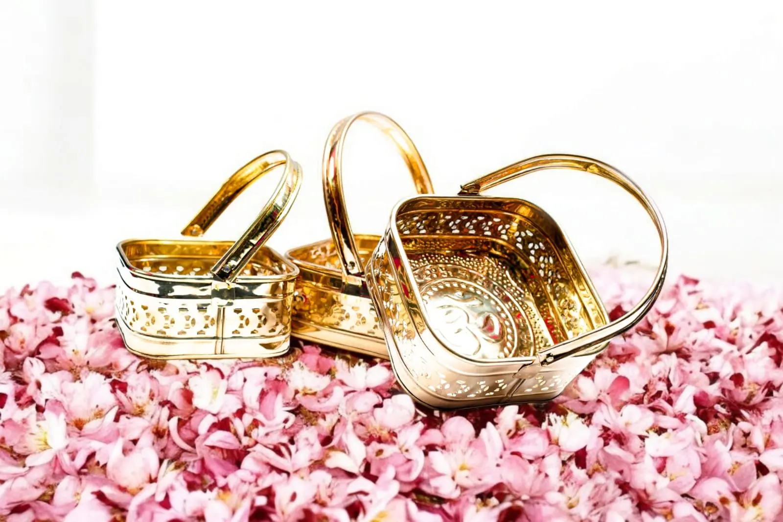 Handcrafted Pure Brass Flower Basket – Traditional Decorative Basket for Puja & Home Décor | Set Of 3