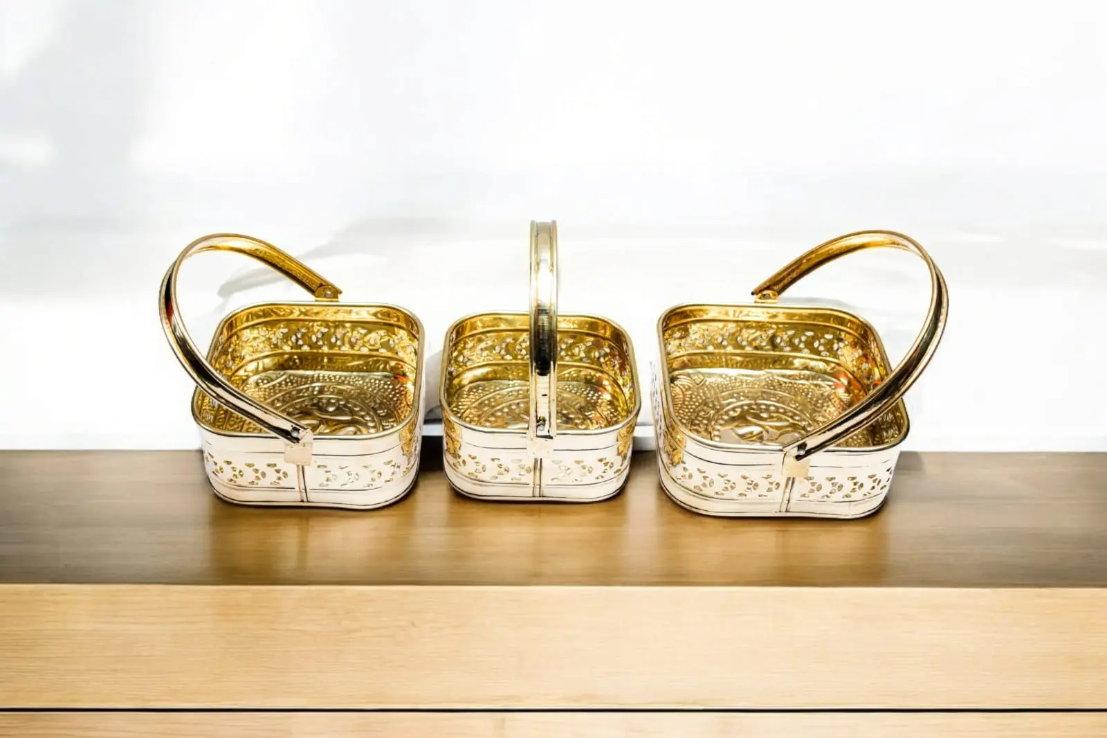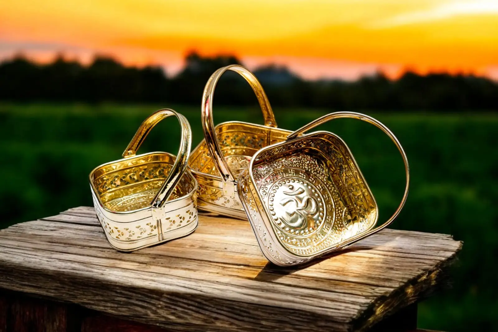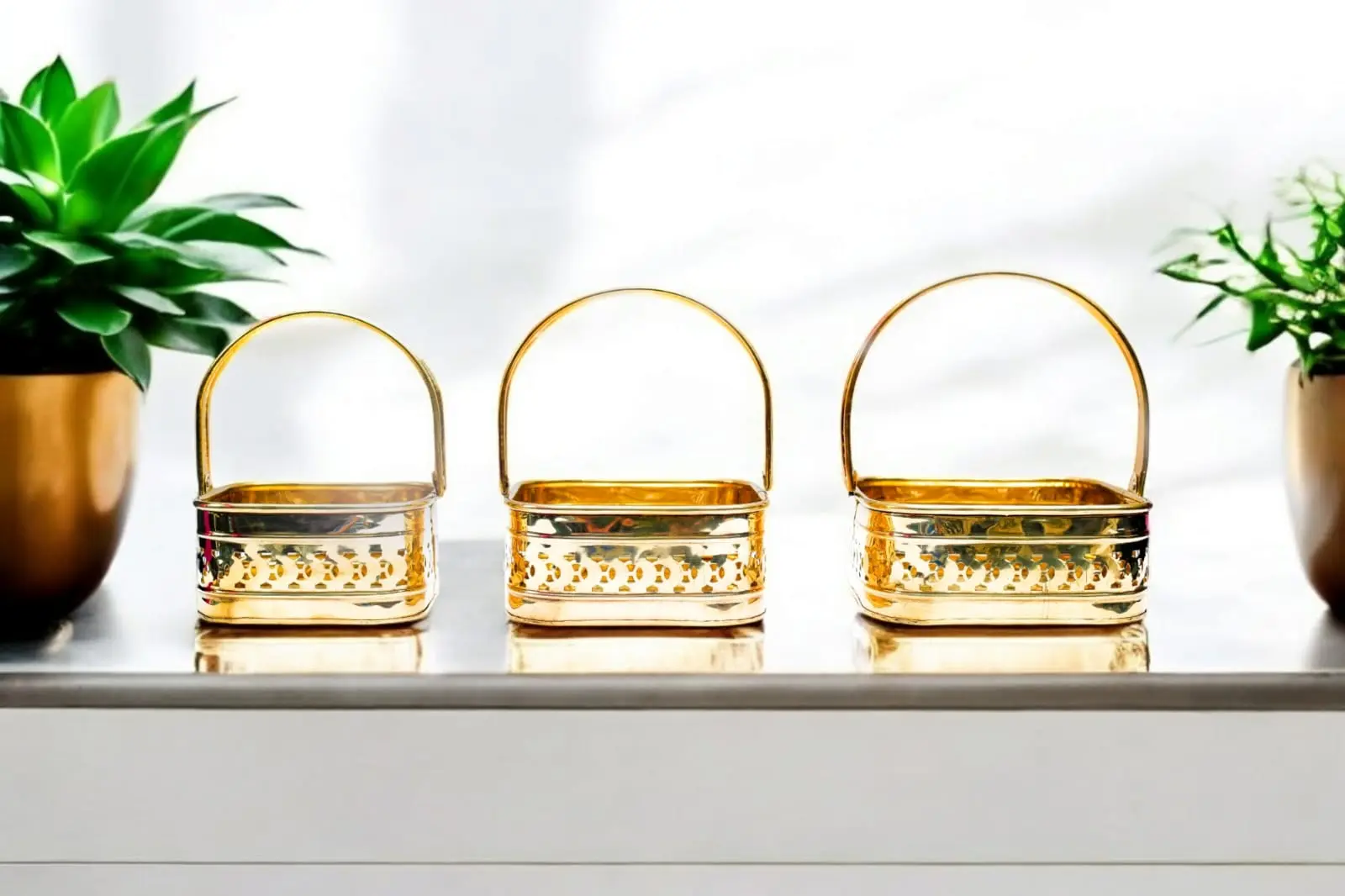 Handcrafted Pure Brass Flower Basket – Traditional Decorative Basket for Puja & Home Décor | Set Of 3