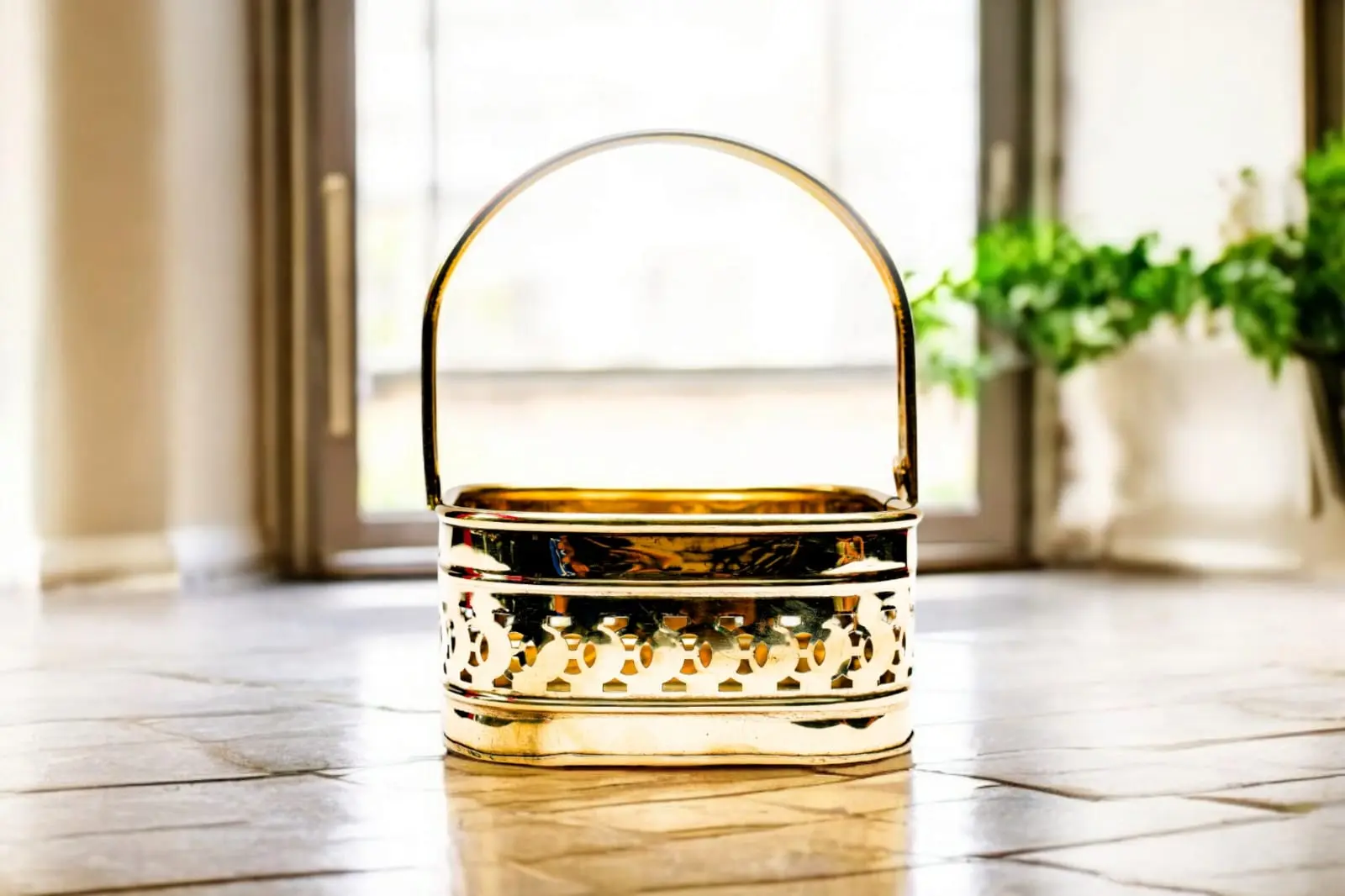 Where flowers bloom, so does hope – and in a brass basket , they shine with the grace of tradition.