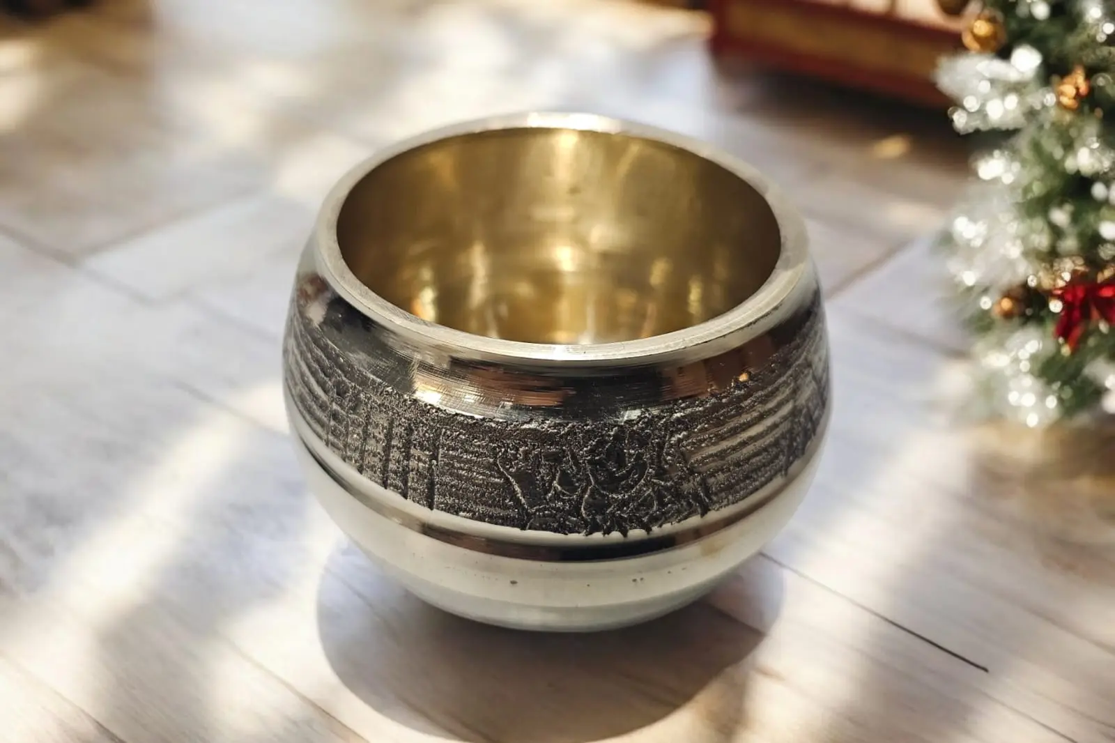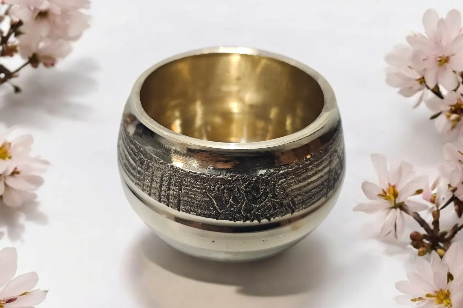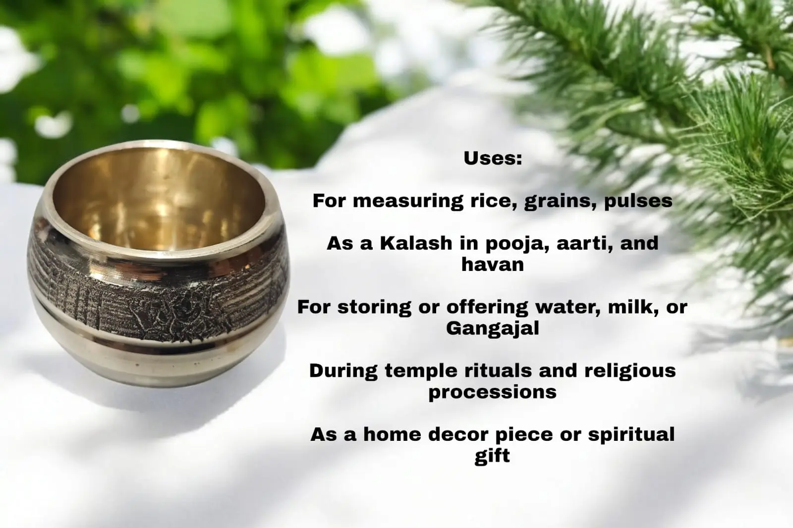 - Its rounded design with carved ridges reflects authentic Indian craftsmanship and cultural heritage. Often used in religious ceremonies like Kalash Sthapana, Griha Pravesh, Navratri, and Diwali, this cup is ideal for holding Gangajal, milk, rice, or other sacred elements. Itβs also used as a traditional measuring tool in rural kitchens and Ayurvedic practices.