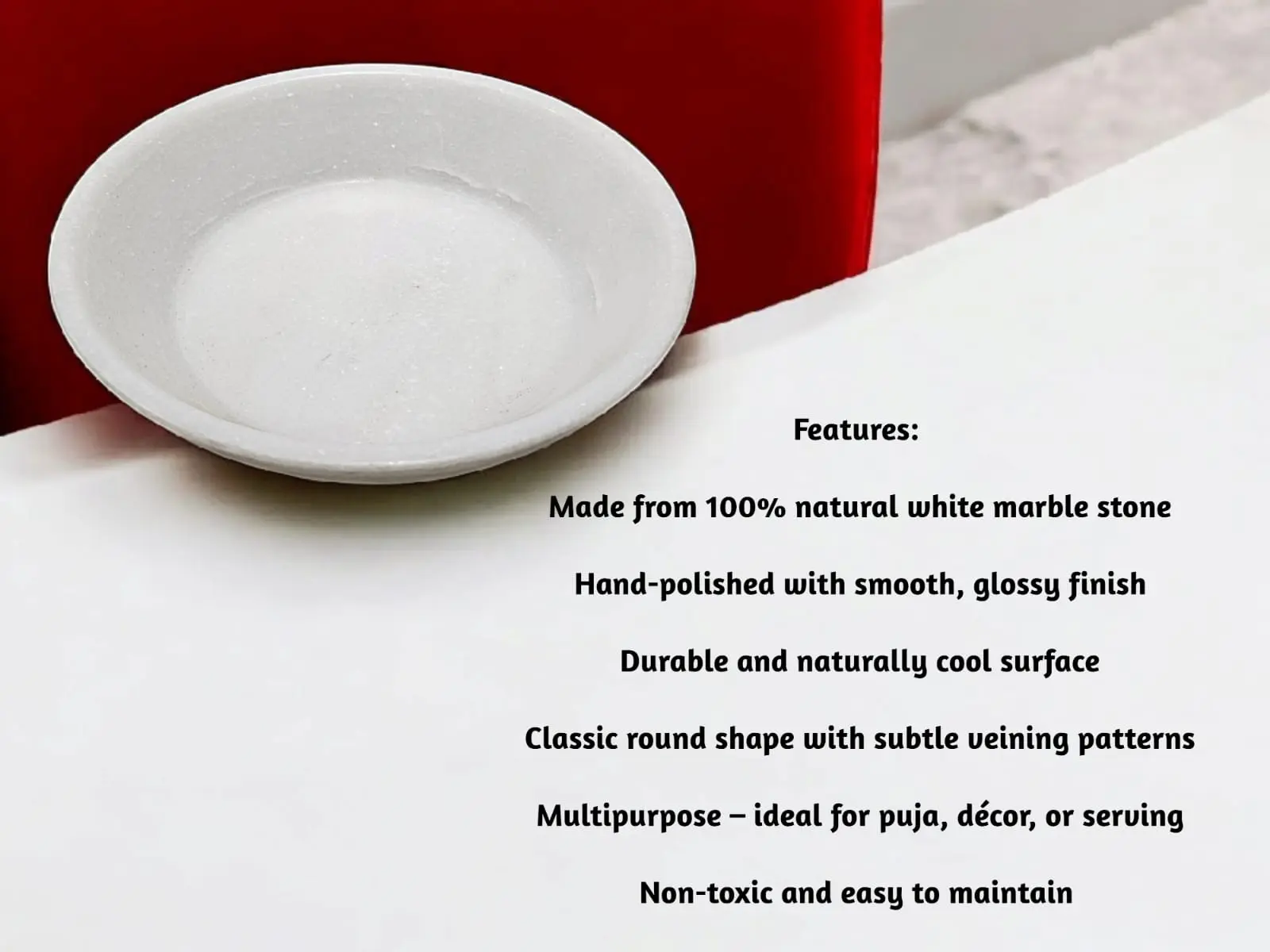 This Original White Marble Stone Plate is a testament to the timeless artistry of Indian craftsmanship. Handcrafted from pure, natural marble, this plate features a smooth surface and subtle veining that adds a touch of elegance to any setting. Whether used in rituals, as a decorative base, or for serving dry offerings, it brings grace, purity, and authenticity to your home or temple space.