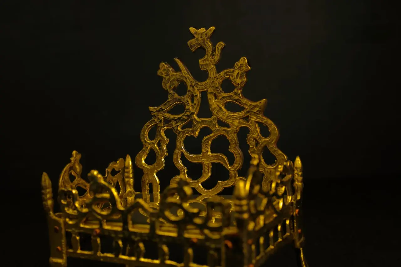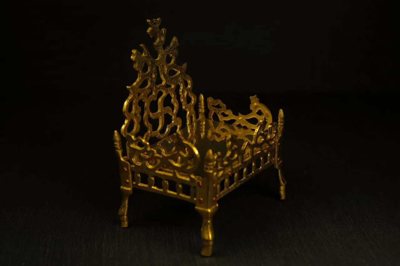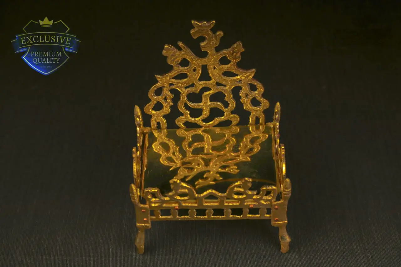 Elevate your deity’s presence with this Handcrafted Brass Singhasan (Throne) for God Idols, a regal seat that reflects divine majesty and reverence. Made from pure brass with intricate carvings, this miniature temple throne is a symbol of devotion and tradition.