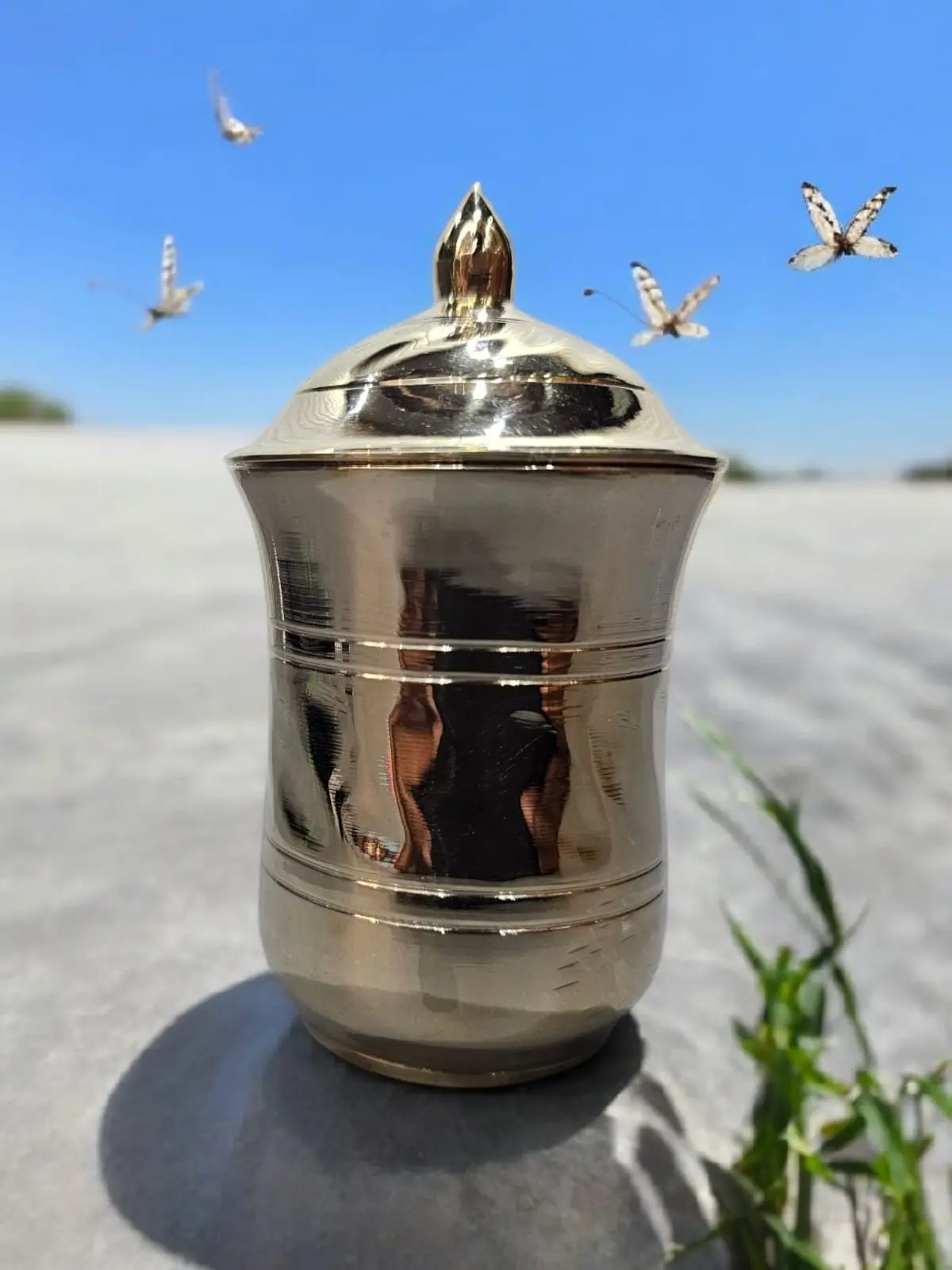 A: It can be used to serve a small amount of ghee, sacred ash, or sweet during rituals, or even to store baby’s first tooth/hair as a keepsake.
