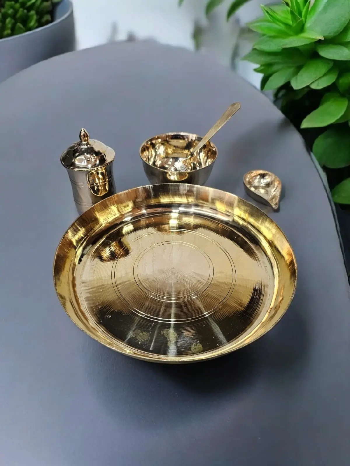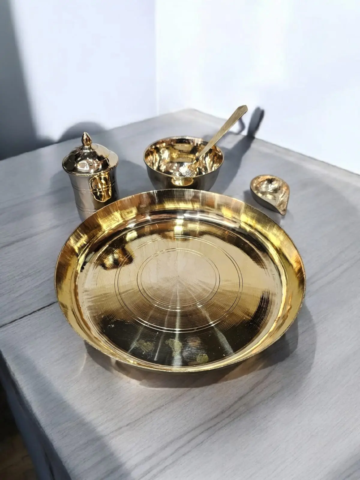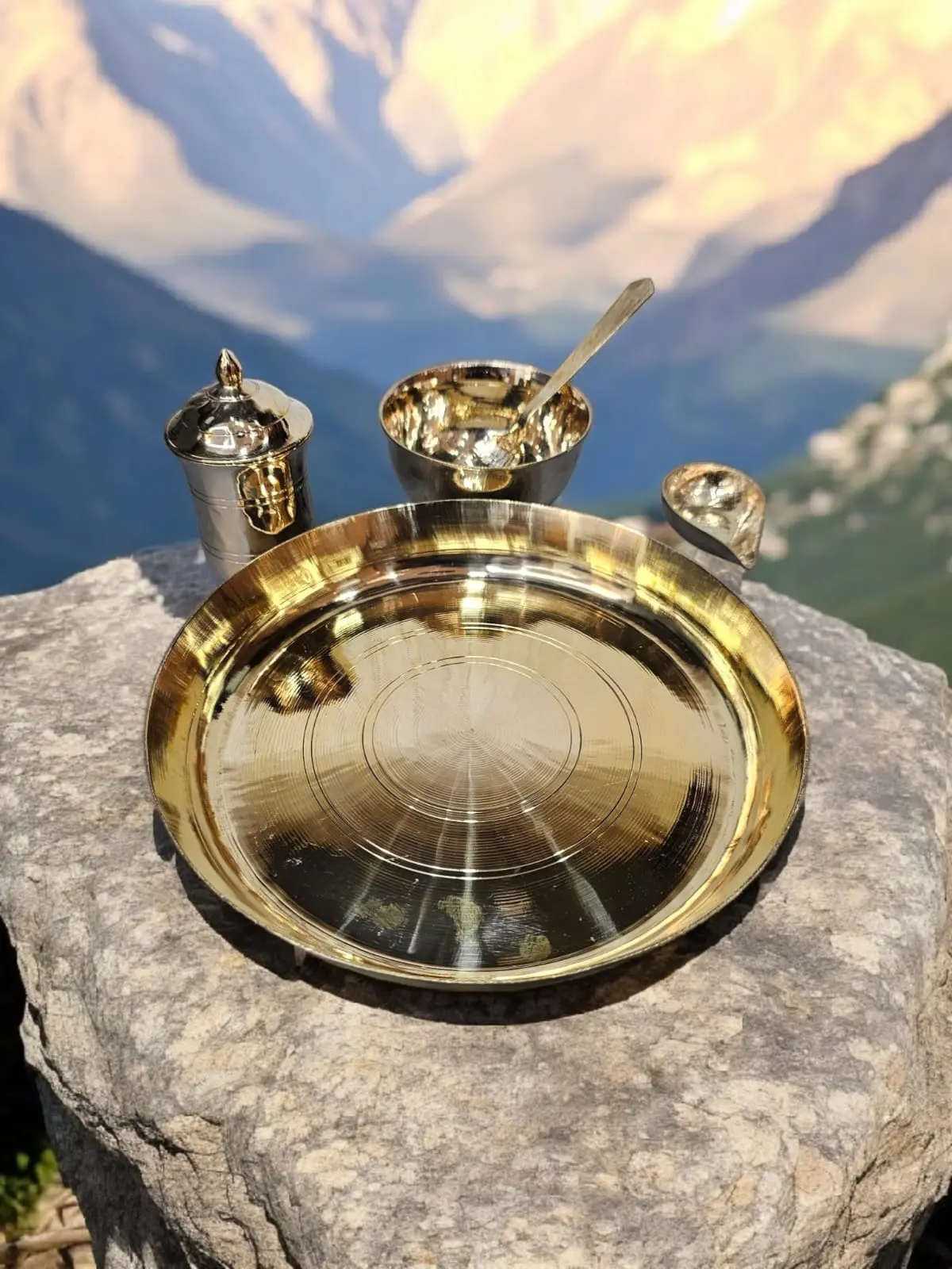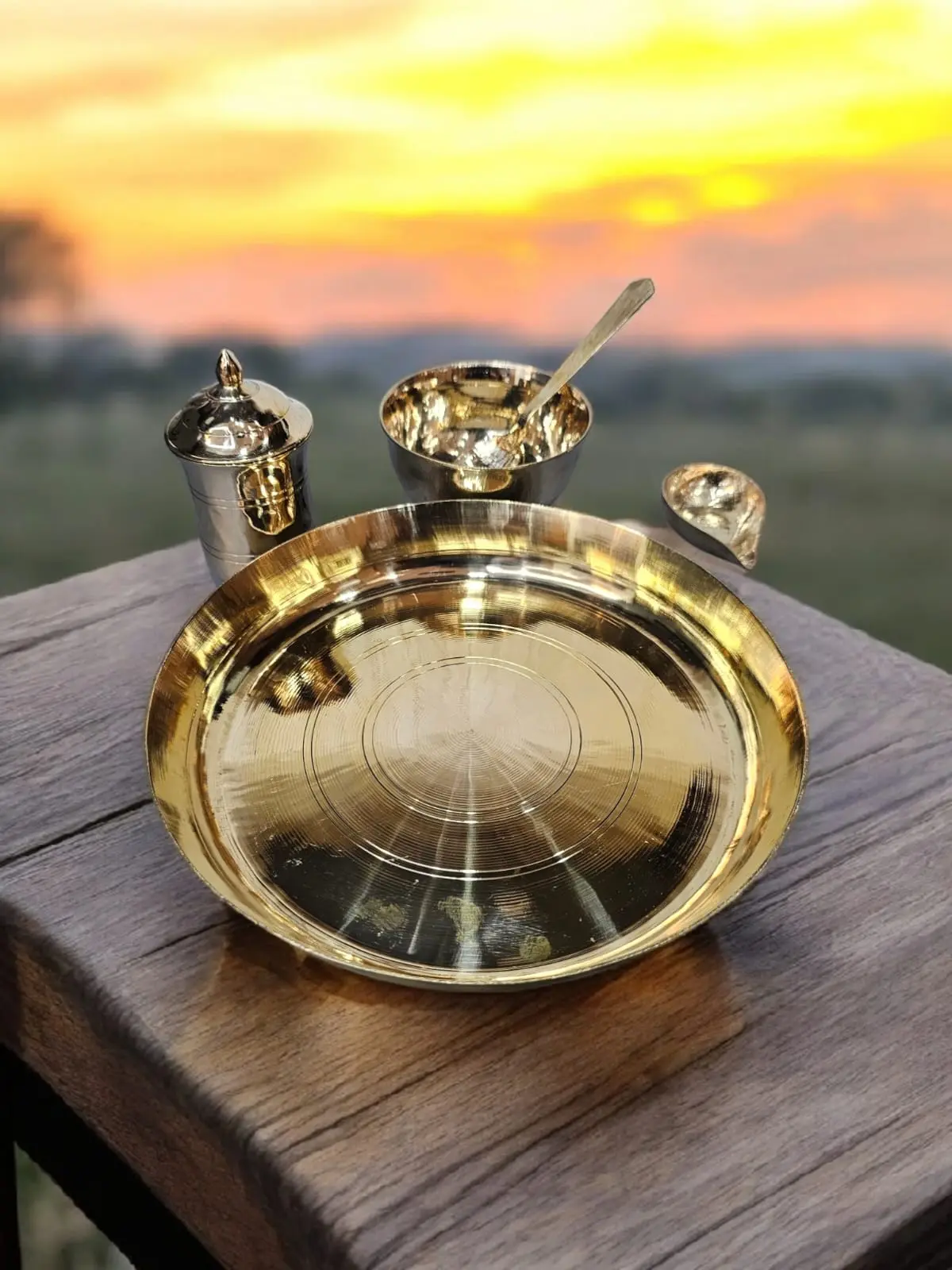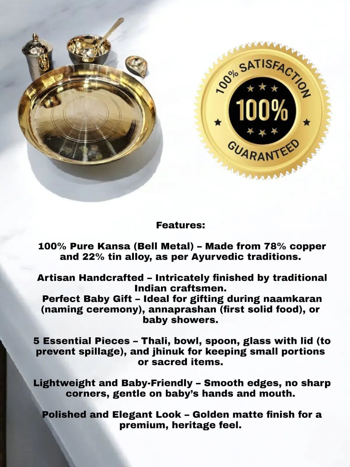 Pure Kansa Baby Dinner Set β Traditional Ayurvedic Gift for Newborns (5-Piece Set) (Includes Thali, Bowl, Glass with Lid, Spoon, and Jhinuk)