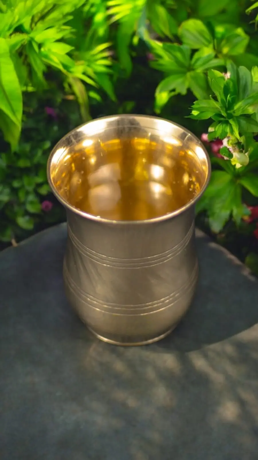 A handcrafted Kansa (bronze) glass rooted in Ayurvedic tradition—perfect for mindful, everyday hydration with health benefits.