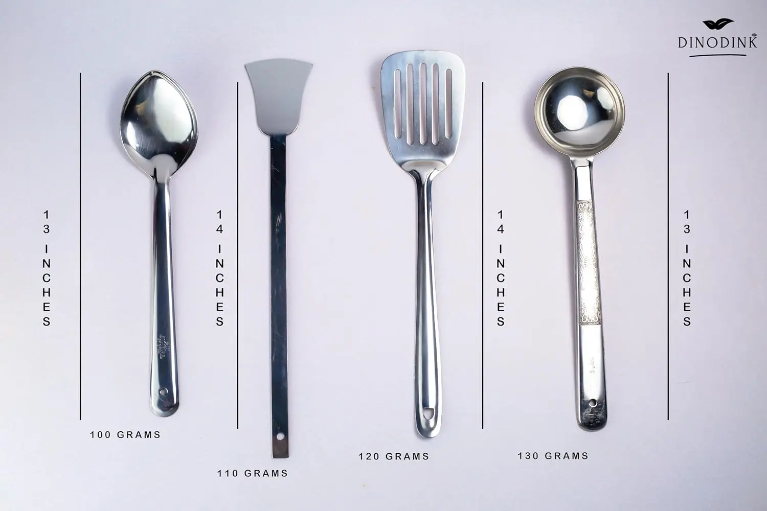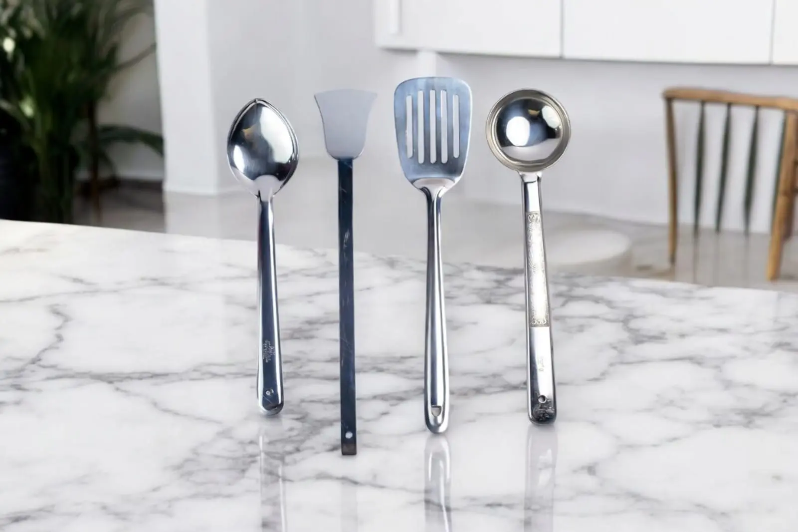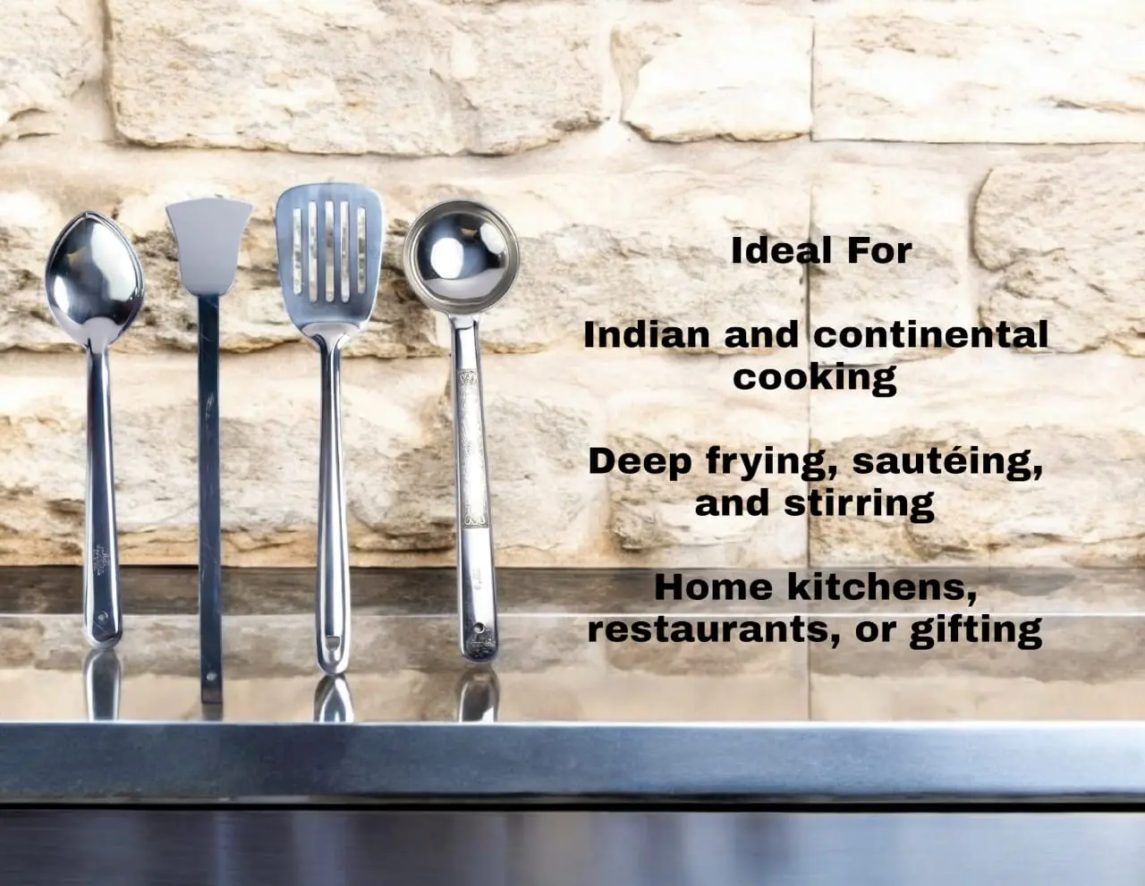 Stainless Steel Cooking Spoon Set – Pack of 4 | Ladle, Skimmer, Spatula & Serving Spoon | Heavy-Duty Kitchen Tools
